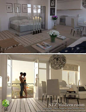 "STZ Modern room 2"- Extreme quality hi polygonal models for Poser (FireFly only) and DAZ studio(Iray only).