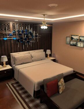 Day and night HDRI, Poseable doors, dressers, table lamps, electrical cord, pot lights, light switches, toilet, and faucets, Morphing curtains, Morphing picture frames, Morphing louvres on closet doors, 3 duvet versions(made, messy and extra messy), 2 sets of pillow which can be rearranged or parts hidden. Bathroom mirror and lights figure can be rearranged or parts hidden.