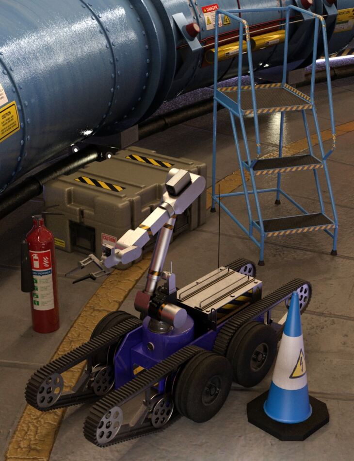 The Props include Case, Cone, Fire Extinguisher, Step Ladder, and a laboratory quality Robot.