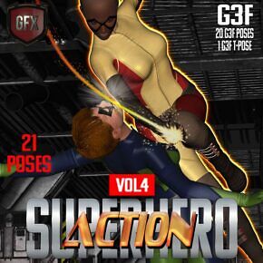 SuperHero Action is a set of poses for G3F. Daz Studio Only.