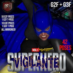 SuperHero Amazon is a set of poses for G2F & G3F plus Olympia Morph from Daz3d. Daz Studio Only.