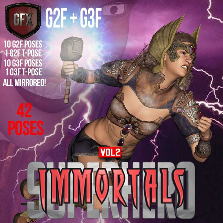 SuperHero Immortals 2 is a set of poses for G2F & G3F. Daz Studio Only.