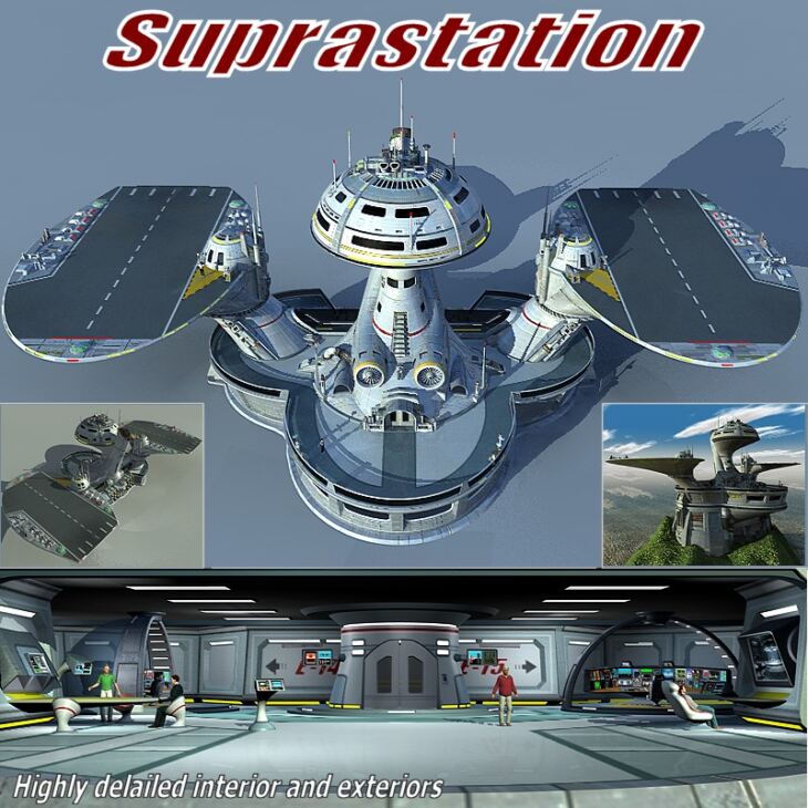 Suprastation is an all terrain science fiction ground base. It is highly detailed and is equally able to generate indoors and outdoors futuristic scenes.