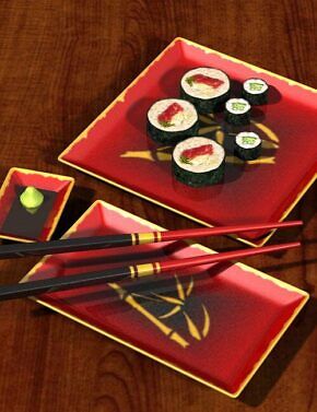 In addition to individual props, I completely equipped the "Sushi Trolly" and saved it as a set. also two sushi menus.