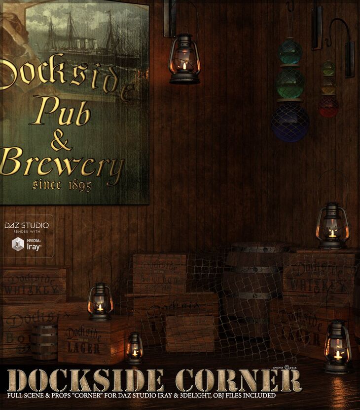 Dockside Corner Scene for Daz Studio 4+. OBJ files/textures included for import into any program.