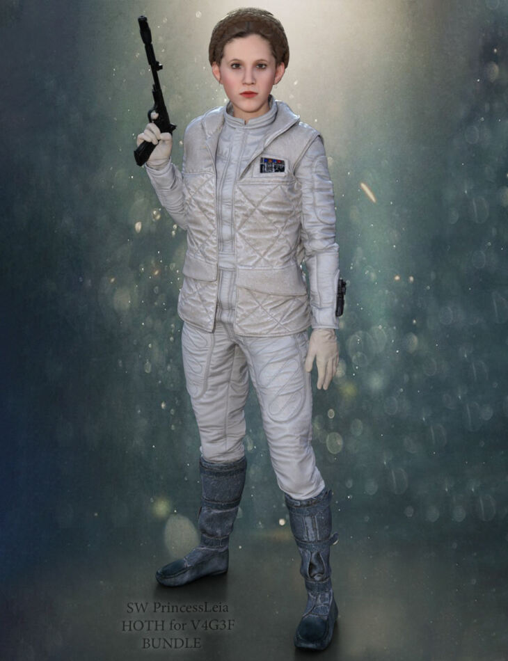 SW Princess Leia Hoth Bundle for V4 and G3F Character for Poser/Daz Studio.