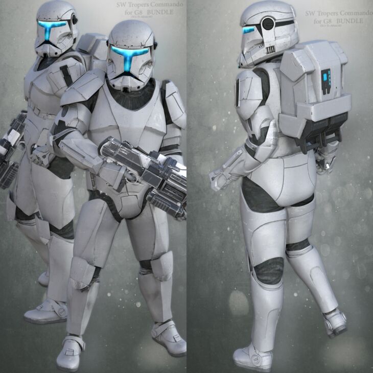 SW Troopers Commando for G8 Characters, males and females, for Daz Studio.