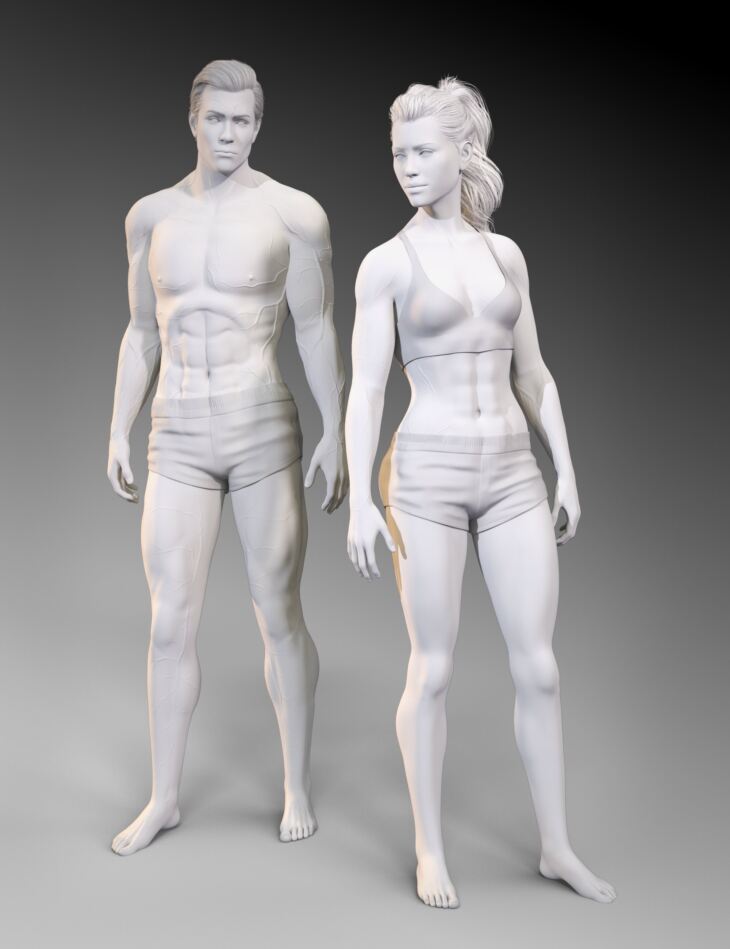 The 28 morphs of this set include separate morphs for definition, mass, veins, and 3 different proportion morphs, as well as a new masculine and feminine base on which these characters are built.