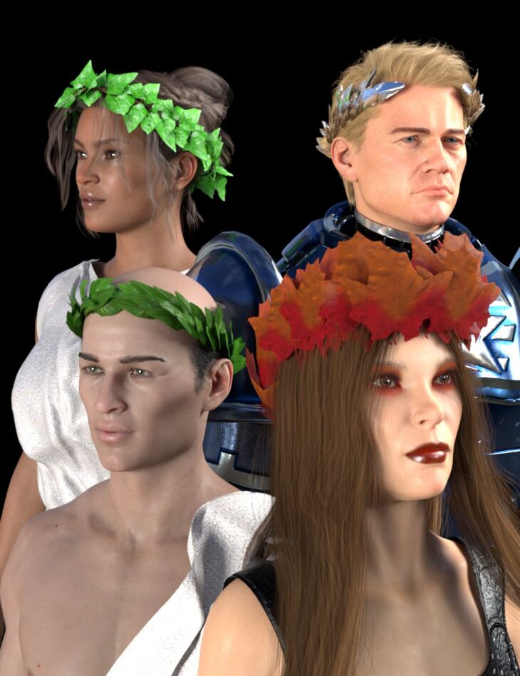 Whether for your Roman senators, sylvan elves, or pagan seasonal rituals, SY Leafy Crowns for Genesis 8 and 8.1 is here to provide grass and leaf crowns for your characters.