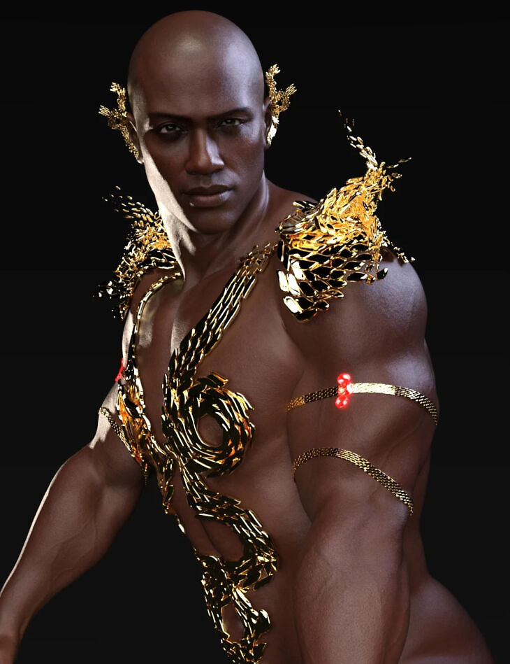 Organic fluid materials, shiny emitters, and geometric hard shapes complete this amazing new item.