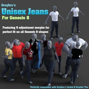 A set of 10 undressing poses with matching shapes for Greybro's Jeans and Graphic Tee for Genesis 8 Female.