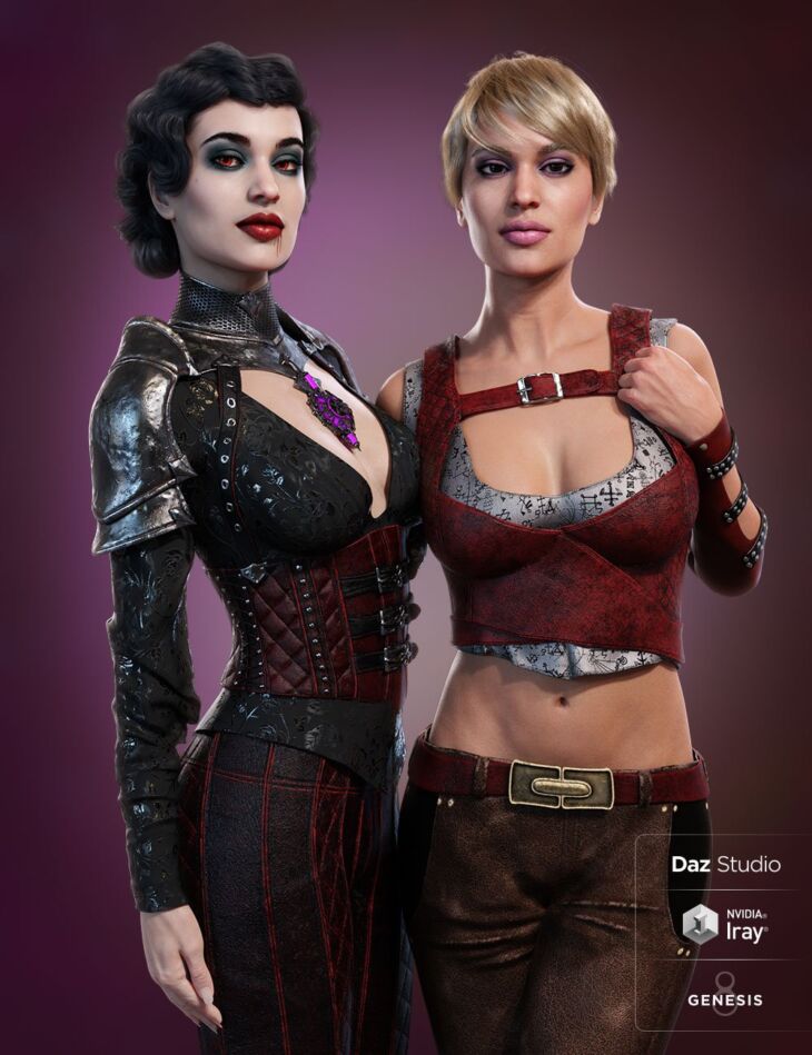 Tasha 8 owns the day and her vampish alter-ego rules the night. Tasha 8 comes with fangs, the better to bite you with, an attractive human skin texture and one with alternate settings that is paler and lighter because her vampish alter-ego rarely sees the light of day.