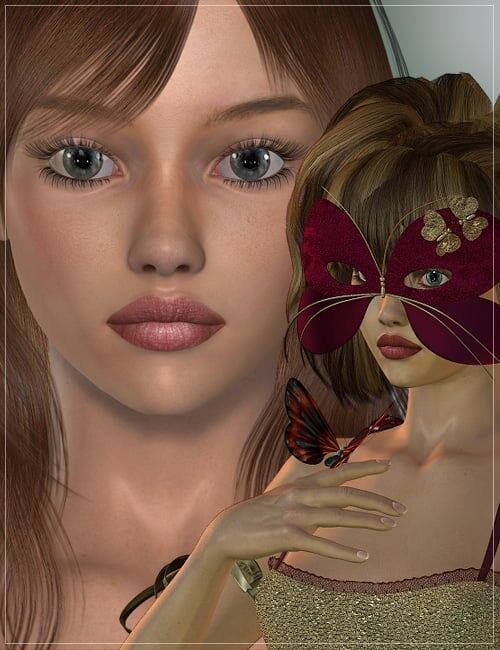 This is the perfect set for your faerie and nymph renders. It includes custom Victoria 4 character, dress, panty, shoes, ribbons, mask, prop butterfly and more!