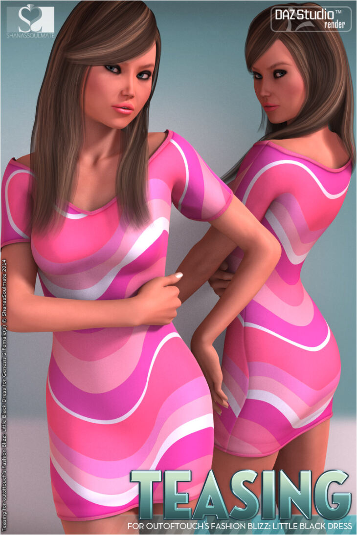 Teasing is a brand new texture pack for outoftouch's Fashion Blizz: Little Black Dress for Genesis 2 Female(s), with this pack you'll get 08 new fully detailed high-resolution texture styles.