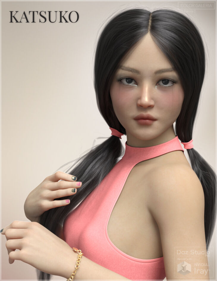 Katsuko is a cute, unique and beautiful character for Genesis 8 Female. She is a custom morph sculpted using the base Genesis 8 Female figure and Growing Up for Genesis 8 Females.