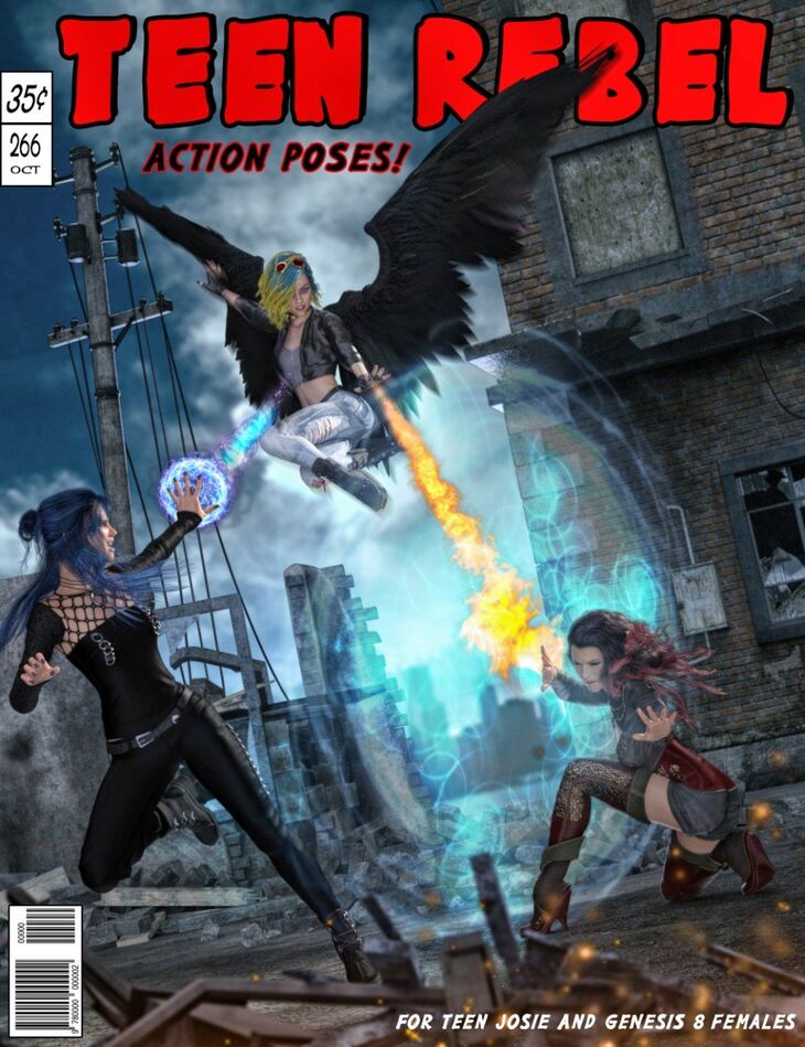 Teen Rebel is a set of action poses for Teen Josie 8 and all Genesis 8 Females.