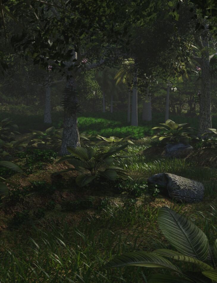 This beautiful forest is a fantastic environment with mounds covered in clover and a terrain rich in grasses, plants, coconut palms, and trees with orchids for your characters to enjoy nature.
