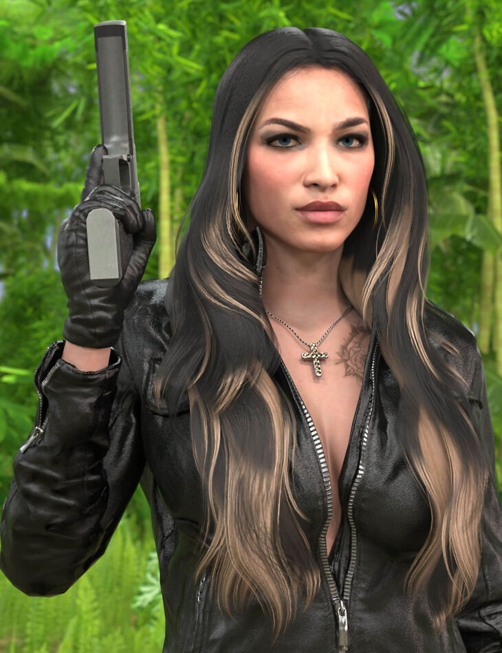 The perfect leather villainess for all of your Daz3D requirements. Santa Blanca's very own Beauty Queen is finally here. If you believe you have what it takes to handle a sexy criminal like her, press the button and Nidia Flores will join, as a permanent addition to your inventory.