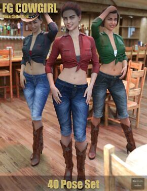 The Cowgirl For G8 is a pose pack for Genesis 8 female and male.