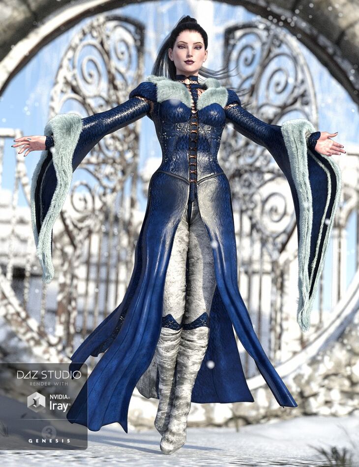 Also includes LAMH presets for the various parts of this set. These allow you to turn the NightQueen ensemble into an elegant winter themed outfit. Iray fur shaders which complement the included texture options are included as well.