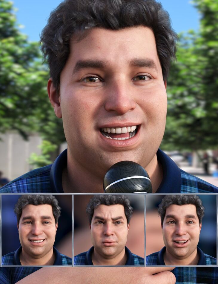 Tell your own story with The Reporter - Expressions for Genesis 8.1 Male and Fred 8.1, this pack contains 40 different expressions divided into Angry, Happy, Sad, and Surprised categories. Choose the intensity of the expressions or combine them with the morph dials included.