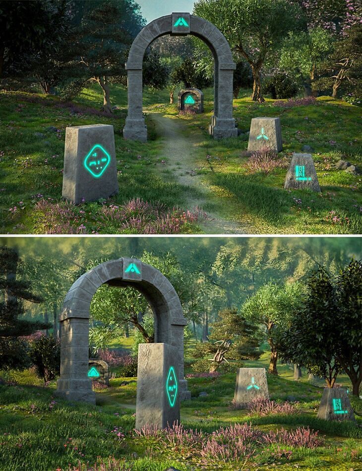 This fully optimized scene comes with high-resolution textures, emissive rune materials, and customizable lighting presets to create everything from serene twilight ambiance to dramatic arcane energy.