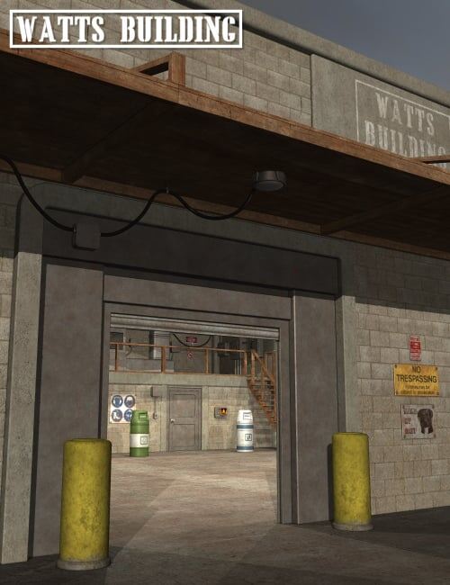 Contains office space, two roll-up doors, five hinged doors, a roof hatch and two skylights. Includes a sink unit figure, storage cage figure, two trash can figures and an interior light set.
