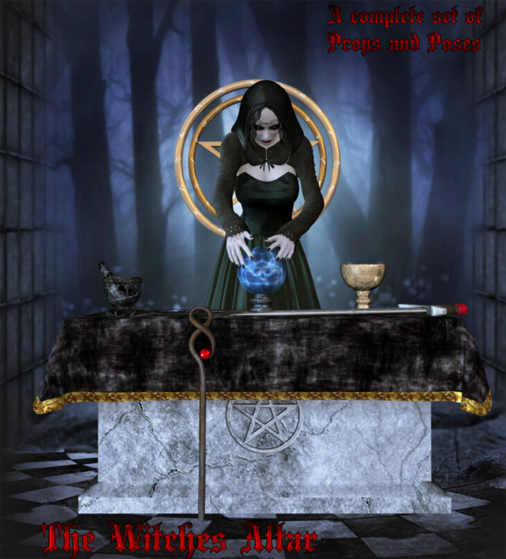 The Witches Altar is a complete set of Props for your all your witches needs. Make some magic with this mystical set of props and poses.