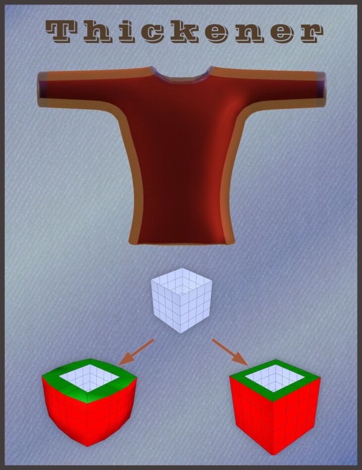 The Thickener Plug-In for Daz Studio converts open-mesh objects (e.g. clothing) into closed-mesh ones, adding a thickness.
