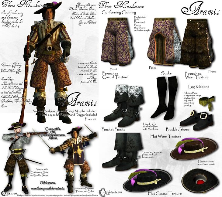 Set of conforming clothing for M4 inspired by XVII th century male outfit from legendary Three Musketeers Novel.