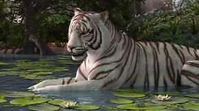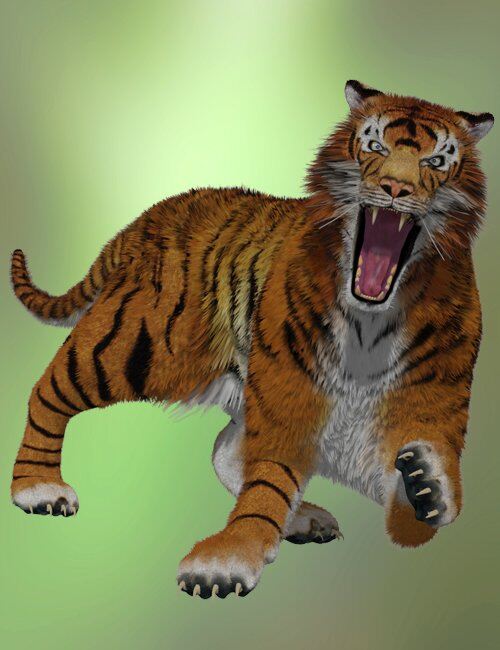 The set features realistic 3d fur (both in standard and white variants) and a hand painted fur texture, 11 morphs and 20 poses to replicate most common aspects and behaviors of tigers.