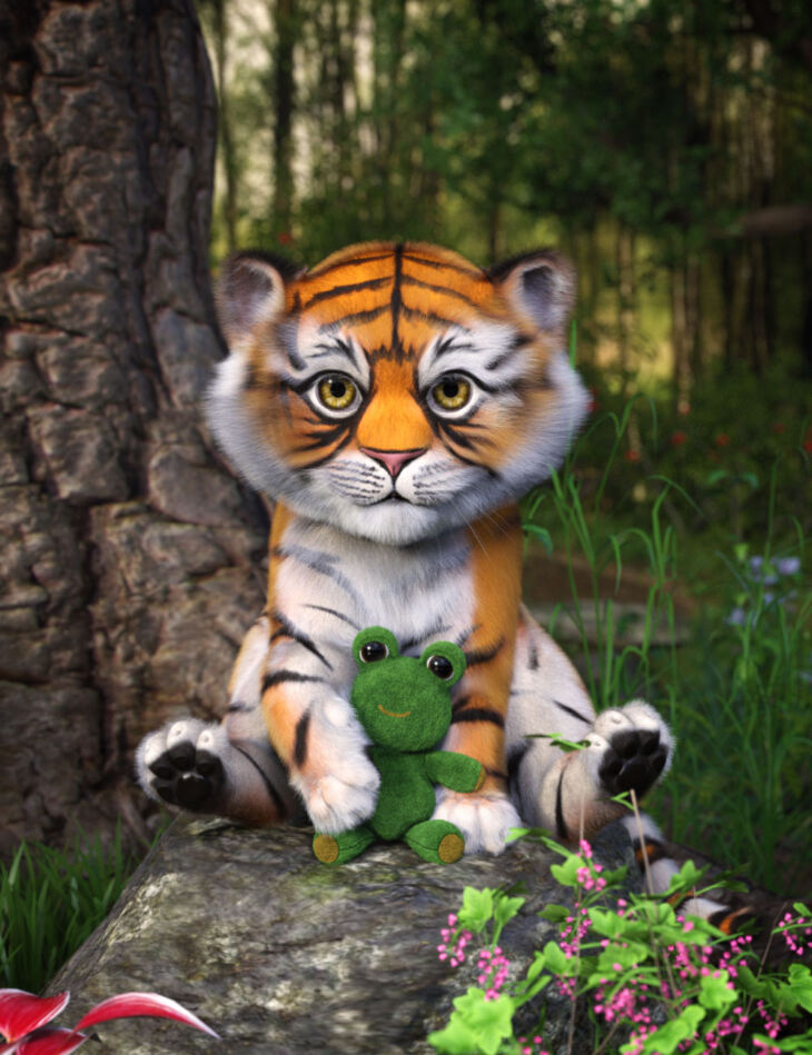 Tikki includes 2 skin and dForce fur colors, as well as 5 poses and several options for the fur. Tikki comes with a little frog dForce costume to match his little pal, Hopplet.