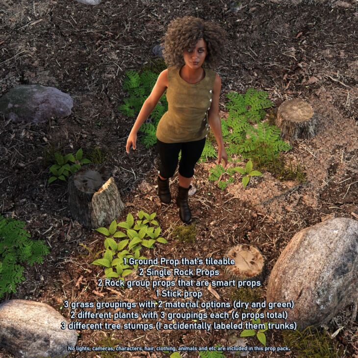 Here is a versatile prop pack containing 18 props that can be used in multiple styles of renders. The ground prop makes this set even more useful because it can be tiled allowing you to use the set in landscape or portrait style renders.