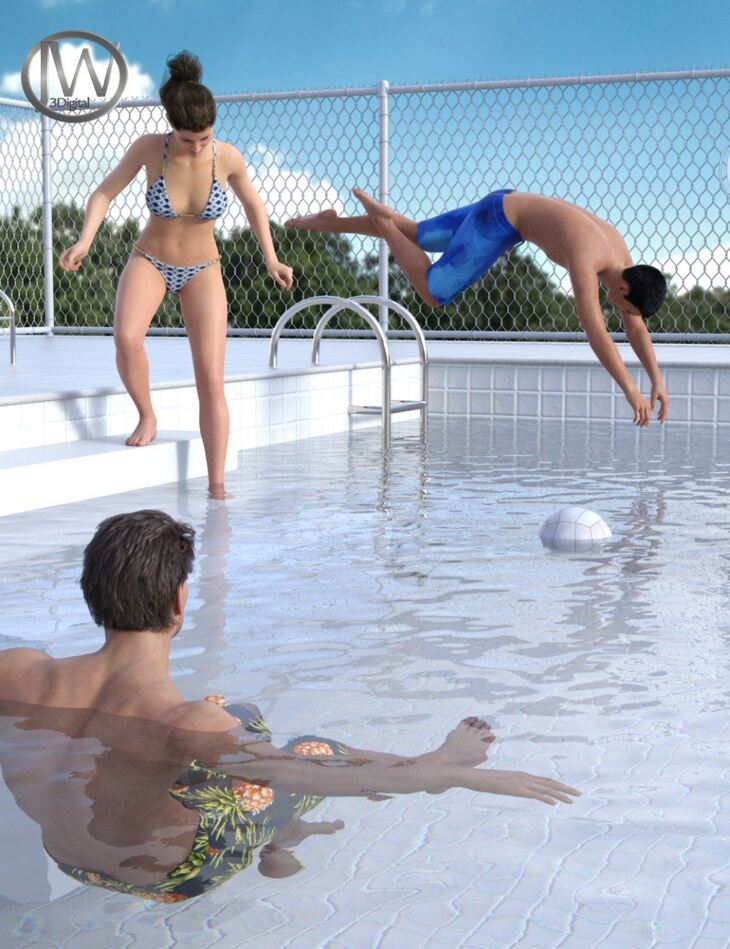 Take your character into the water and get ready to render - "Time to Swim" contains 50 poses ( 25 original + 25 mirror) for each character (Genesis 3 & 8 Female and Male), giving you a spontaneous look when jumping into or swimming in the water.