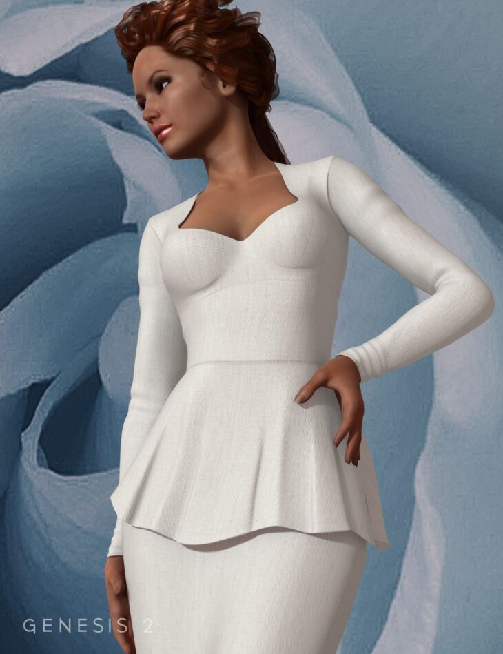 Designed with versatility in mind. "Divine" is a classically styled peplum dress with simple (but realistic) textures that you can Mix and match with ANY outfit by changing the Diffuse/Ambient/Specular color and settings. It comes with 3 completely different textures (and some color variations to get you started).