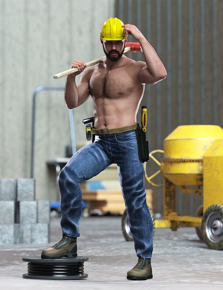 Unleash the rugged and industrious spirit of your Genesis 9 Male characters with "Tool Man," a dynamic pose pack that brings the world of construction to life.