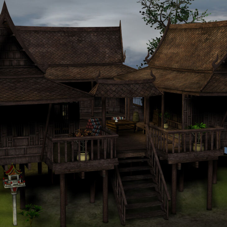 The Thaihouse will load in to your scene already scaled to the standard Poser people.