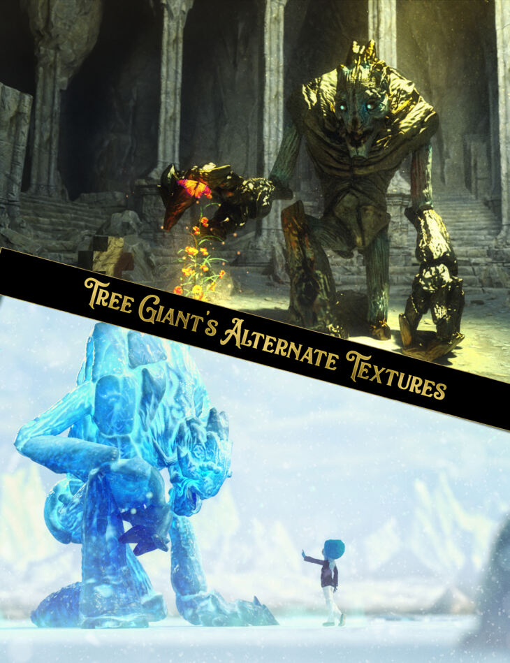 Tree Giant's Alternate Textures is a set of 4 full-body textures that alter the original concept of the character by moving him from tree-folk to fearsome golem. Whether you want him to become a beautiful golem of metal or a cold ice giant, these skins will help you cast his role.