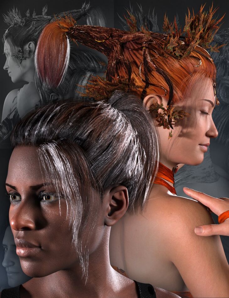 This extraordinary bundle combines three versatile hair sets, each designed for the Genesis 8 and 8.1 male and female and the Genesis 9 figures, allowing you to create an endless array of captivating looks.