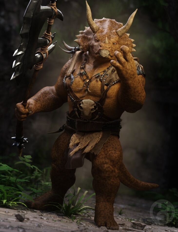 The Tricera set will turn Genesis 8.1 Male into a truly anthropomorphic Triceratops creature.