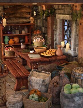 Triple Moon Cottage and Props is a cozy, stone cottage and furniture and props perfect for your fantasy witch to set up shop. Filled with magical potions, herbs, and witchy tools, as well as a full compliment of rustic furniture, Triple Moon Cottage is also well suited for other fantasy renders.