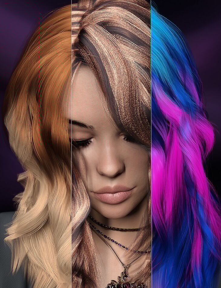 Whether you’re aiming for a natural look with subtle browns and blondes or want to go bold with neon pinks and electric blues, we have you covered. Mix and match shades to create unique gradients that reflect your character's personality. All shaders are in Iray!