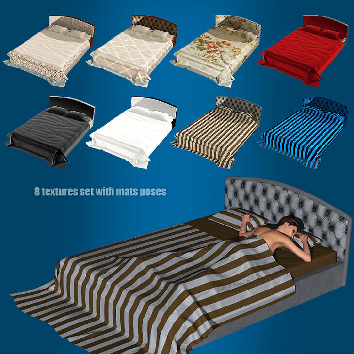 - 1 bed figure & .obj with 5 materials areas (ability to manipulate the pillows with the standard dials: translate, scale and rotations)