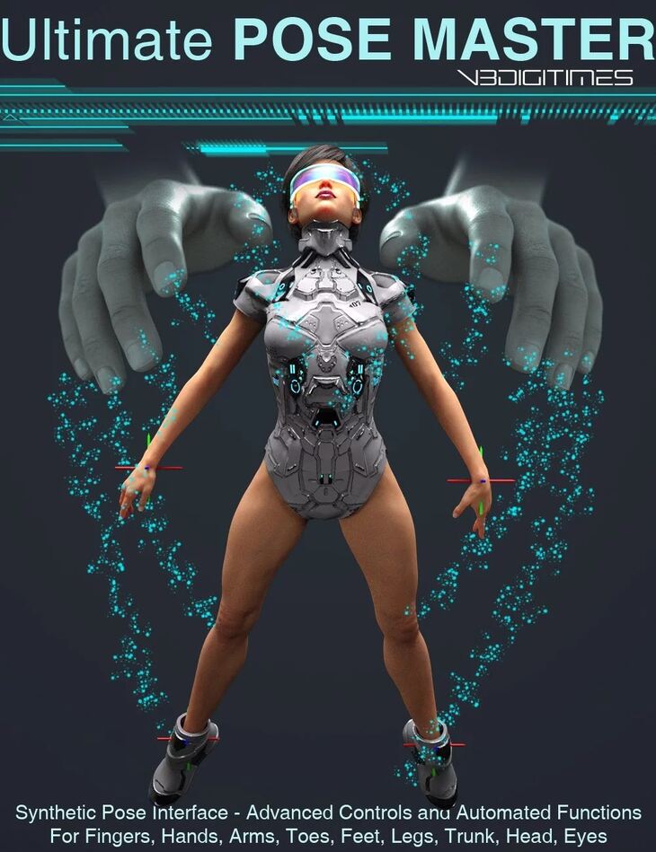 With Ultimate Pose Master you will be able to create poses or modify existing ones very easily and efficiently. Ultimate Pose Master is a powerful and flexible tool which can be used in different ways. It provides an optimized interface and unique tools dedicated to optimize your pose creation workflow, for Genesis 3 and Genesis 8 figures.