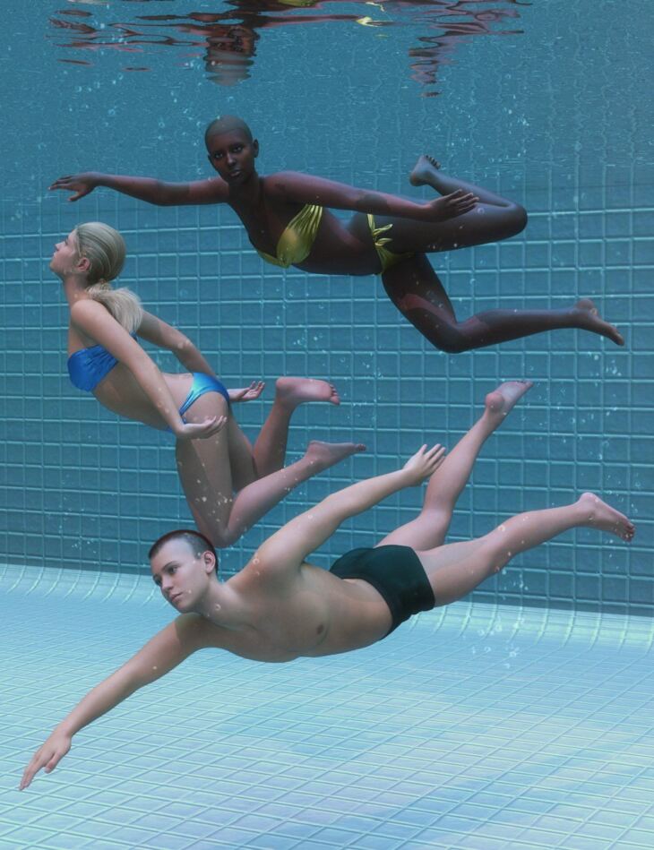 Make your perfect underwater scene with these underwater poses for Genesis 9.