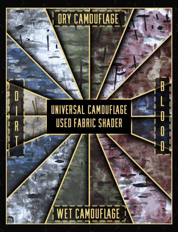 Add more variety to your scene with the Universal Camouflage Wet and Dry Used Fabric Shader pack.