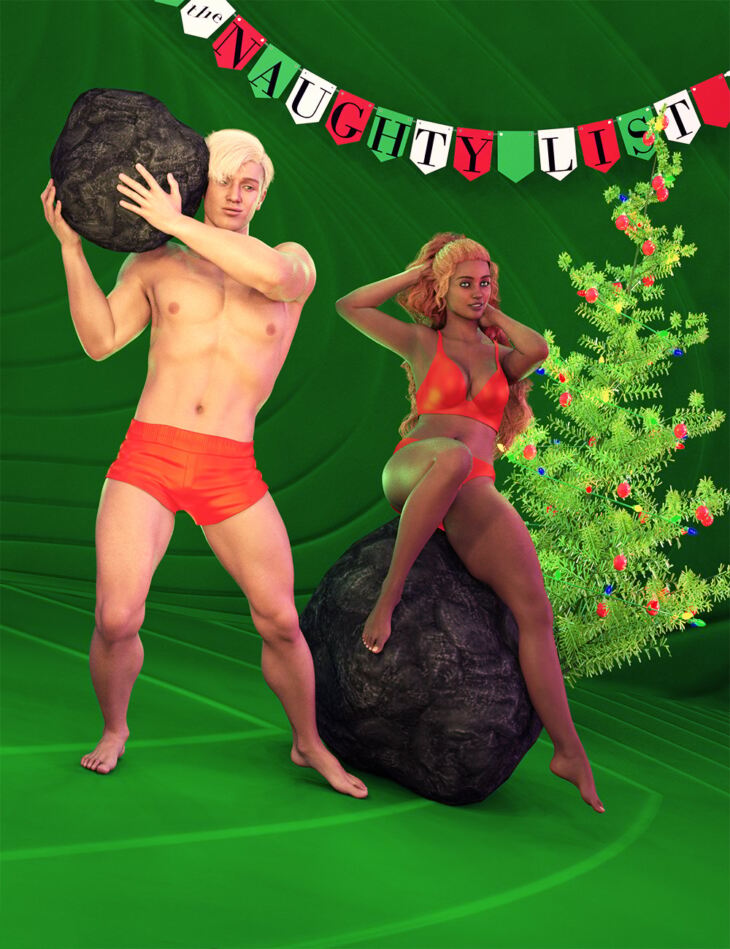 The Up 2 No Good Prop and Pose set includes a digitally recreated 3D lump of coal that has been textured for maximum realism. Plus, there are a couple of pinup poses and expressions to leave a nice smile on your lips.