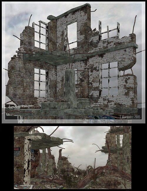 Take your urban renders to another level with this set of city ruins; buildings in decay & disrepair watch over a battle scarred landscape.