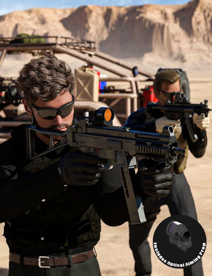 The Urban Tactical SMG Pose for Genesis 3 and 8 product offers a variety of poses of 3 types of sub-machine guns that are frequently featured in movies.
