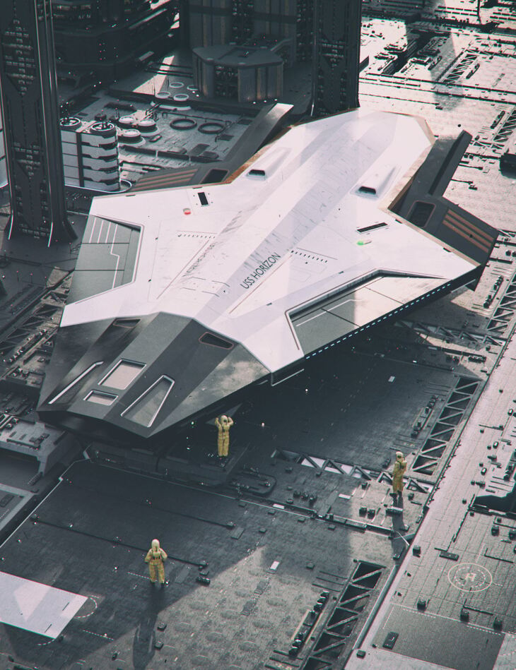 Take to the stars with the USS Horizon, a futuristic super ship. Easy to use and quick to render, you can move the wings with its pose controls and easily change the colors of the materials individually.